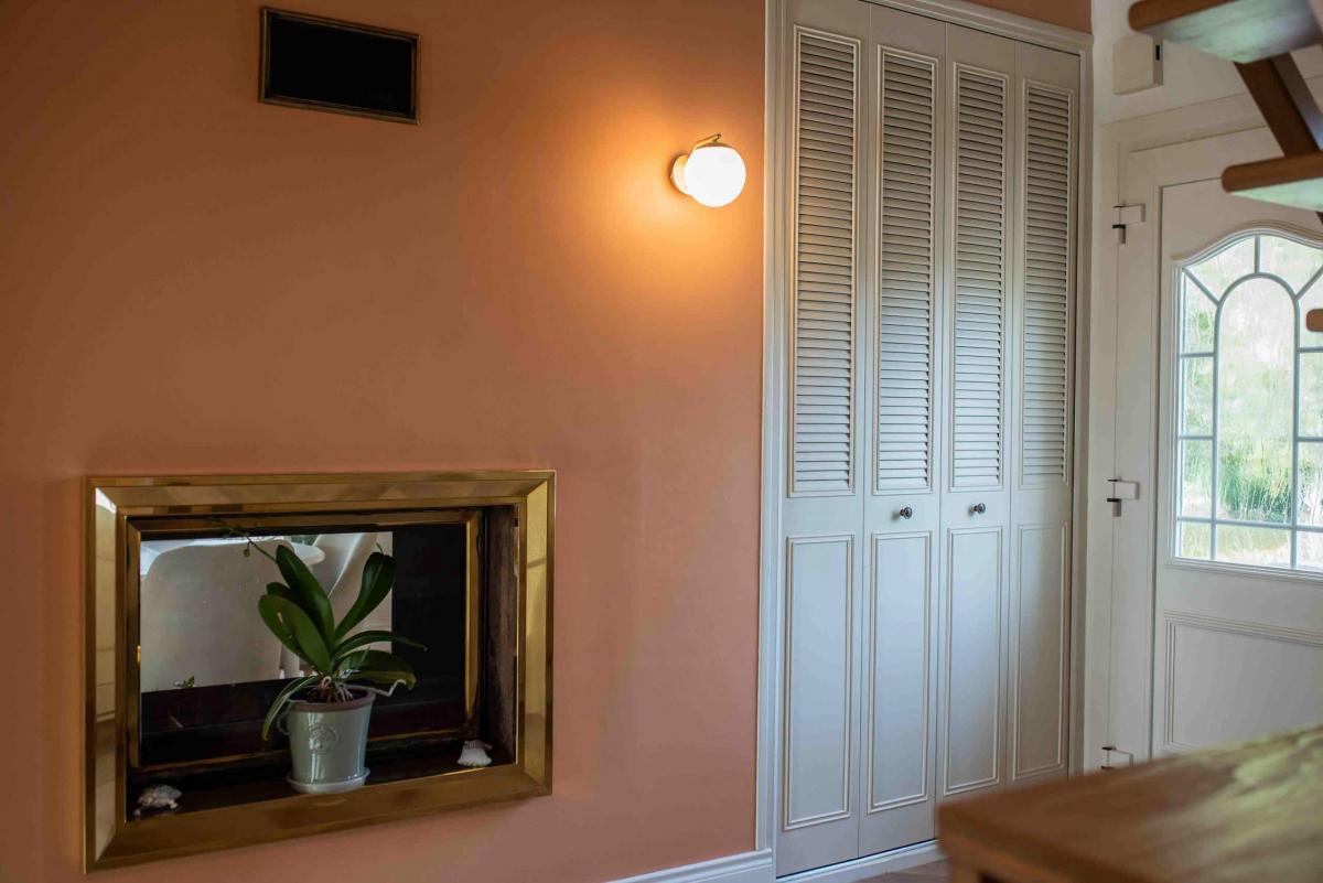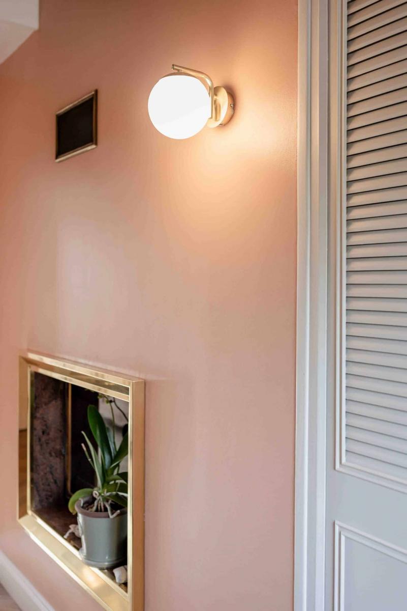 On modifie également les appliques et on les choisies dorés comme le cadre de la cheminée.