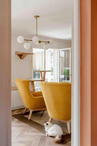 Pour l’espace repas l’hiver, télétravail l’été, je leur conseille de garder la table mais de changer les assises pour des chaises en tissus plus confortables.