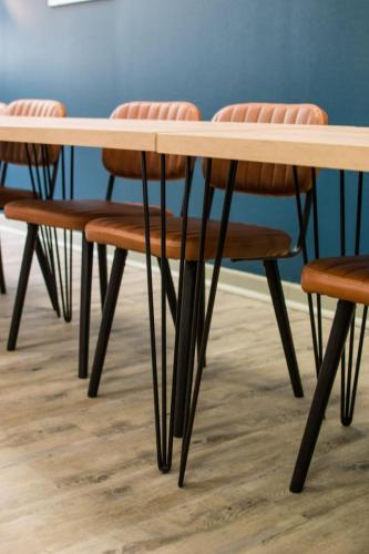 L’ensemble du mobilier sera en bois clair associé à des piètements métalliques.
