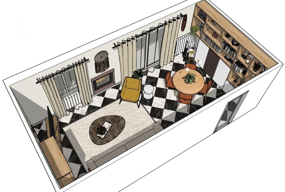 Le salon tout en longueur doit être repensé pour optimiser la circulation et rendre l’espace plus fluide.