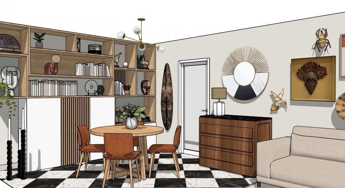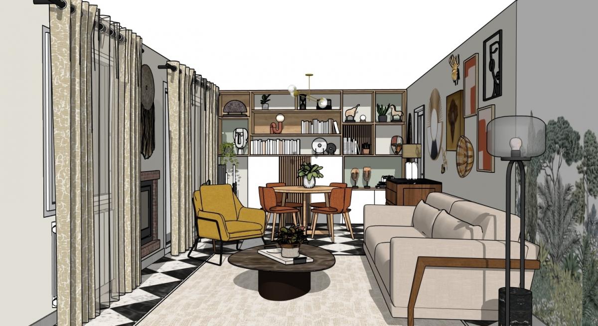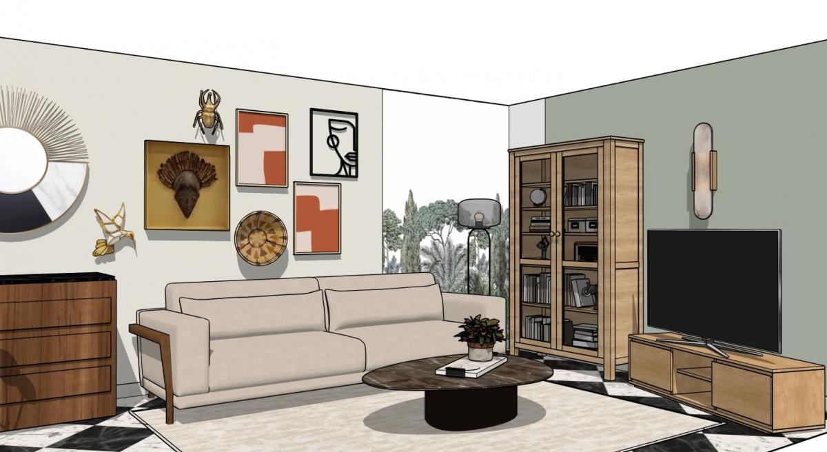 Planche d'aménagement intérieur d'un séjour exotique à Petit quevilly
