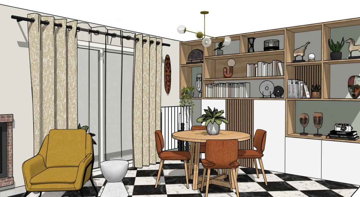 Pour accompagner mes clients et les rassurer avant de se lancer dans les peintures et la création de leur rangement sur-mesure, nous avons réalisé un projet 3D détaillé.