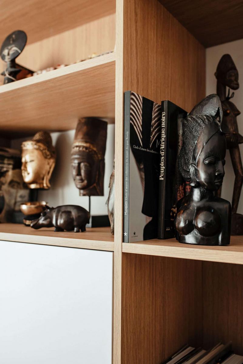 Mes clients sont de grands voyageurs et souhaitaient un séjour exotique où exposer leurs nombreux souvenirs collectés au fil du temps.